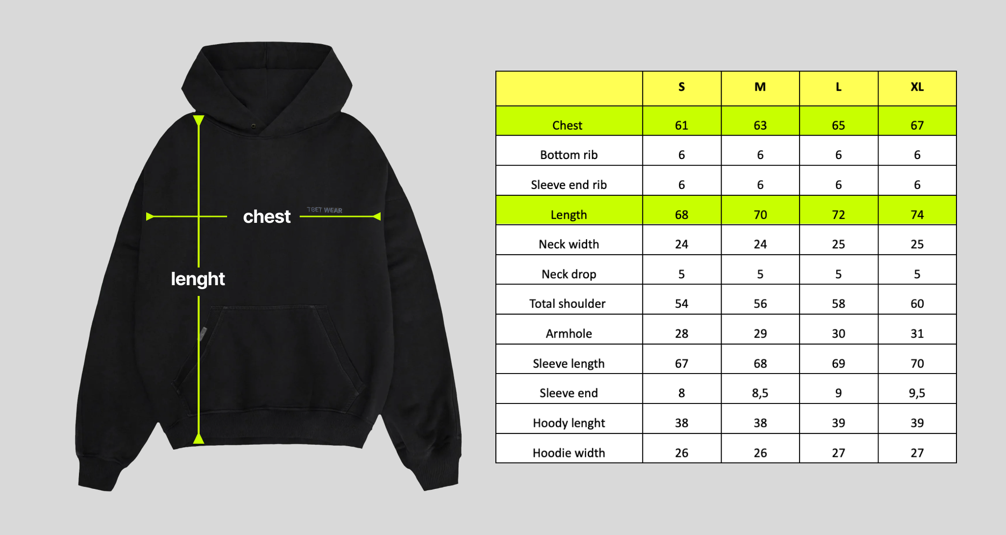 • Besondere Details: TBET Studio 614 Stickerei an der rechten unteren Seite; Knöpfe an der Kapuze